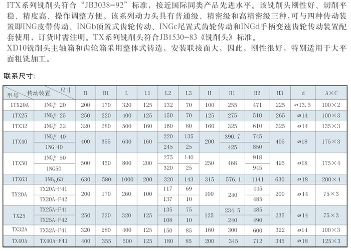 25 TX系列、1TX系列、XD10銑削動力頭 詳細參數